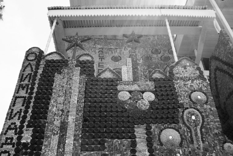 Binanın inşasında kiçik dərman şüşələrindən, təbii müxtəlif ölçülü dəniz daşlarından da istifadə olunub.